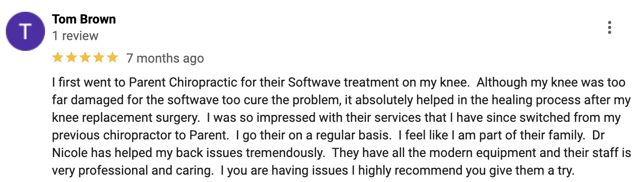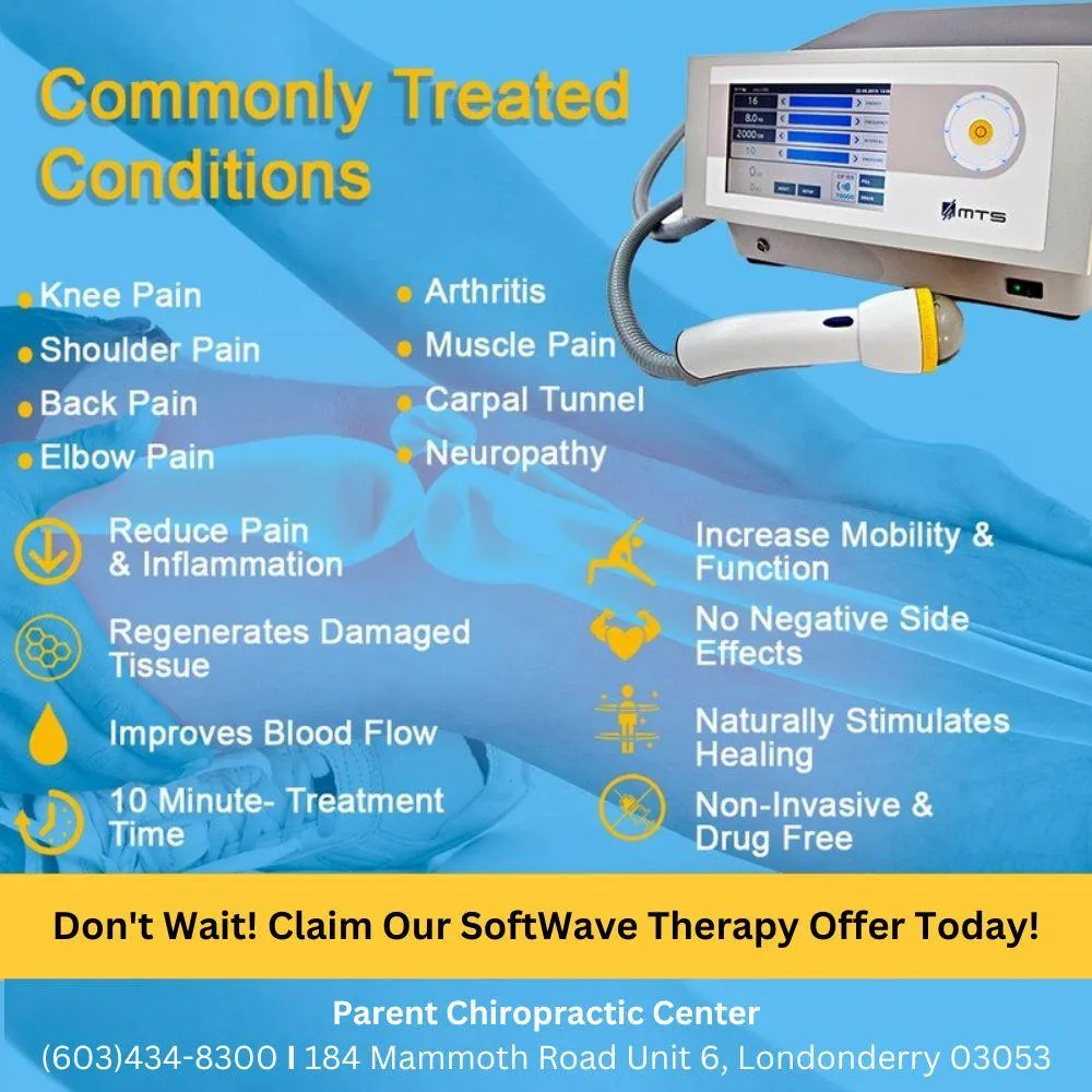 As part of this SoftWave™ Therapy special, you will receive the following at your appointment at Parent Chiropractic Center: